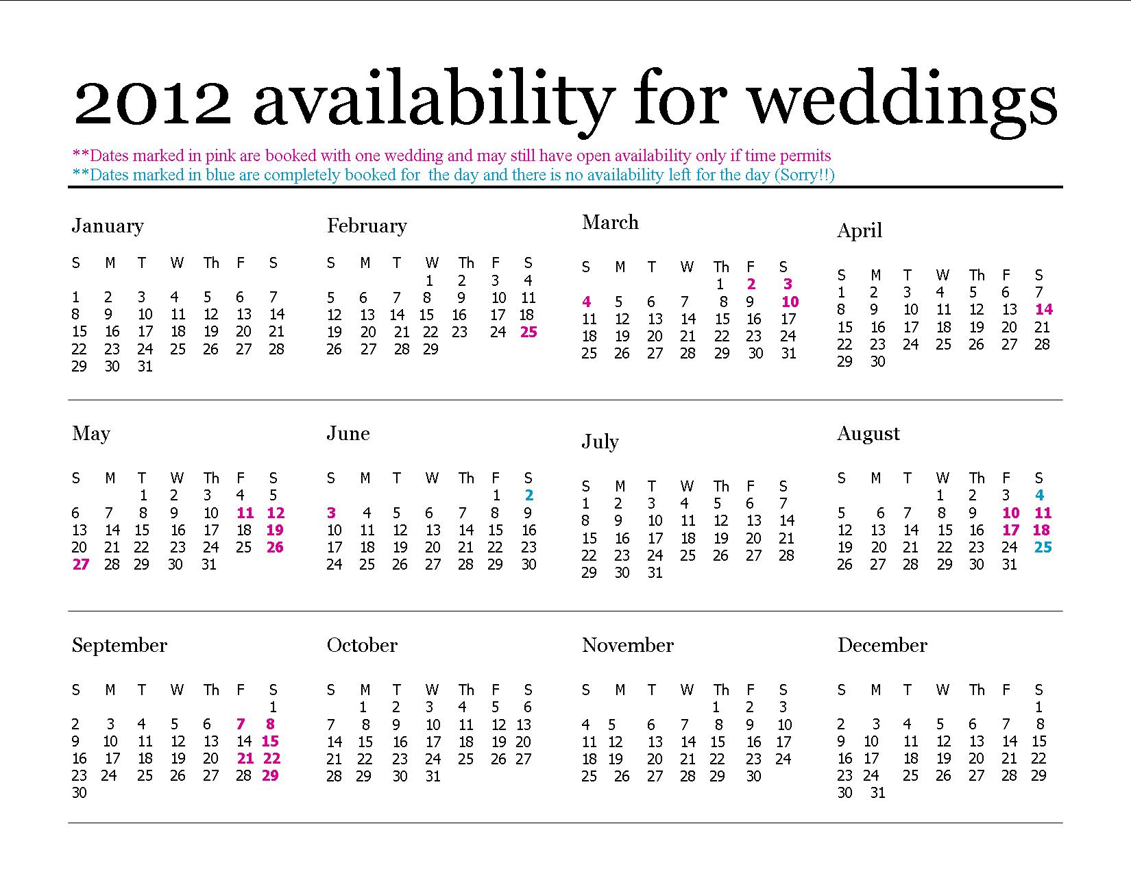 Wedding Availability